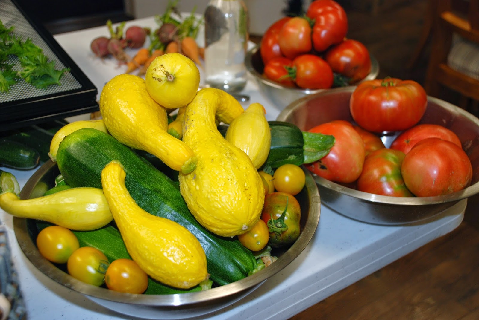 Seeing these beautiful veggies and knowing we grew them makes them taste all the better. Now does anyone out there have a new way to use up zucchini? bah-ha-ha-ha! But seriously, you gotta love how pretty all these veggies are.